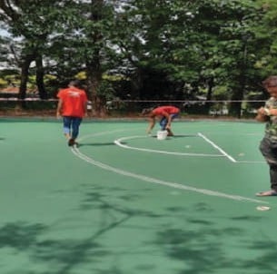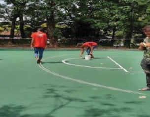 Basketball flooring repairing and painting work