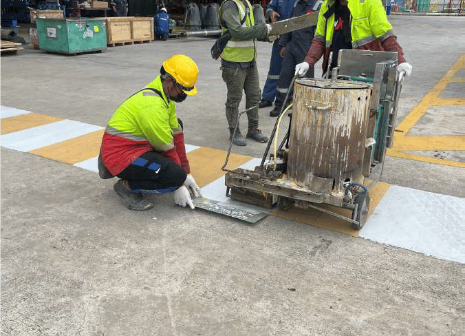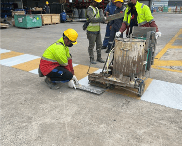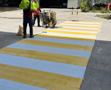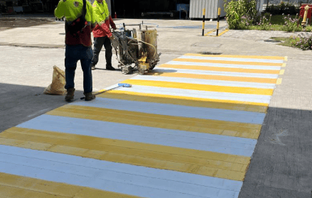 Thermoplastic road line work